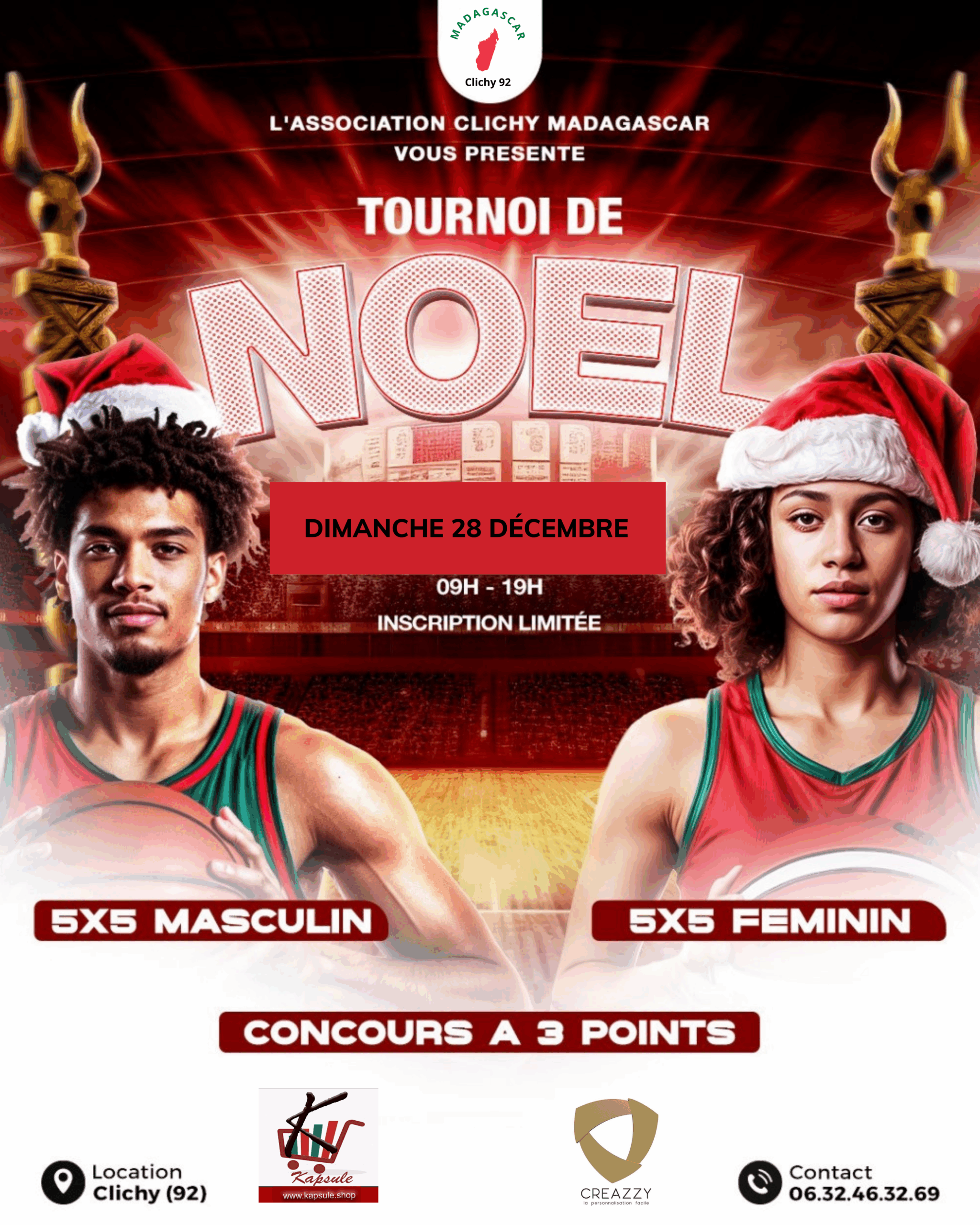 Dimanche 16 novembre – 10h30 Gymnase Van Gogh, Clichy DERBY à CLICHY C’est le match des générations ! Les jeunes loups de Legasy (3...