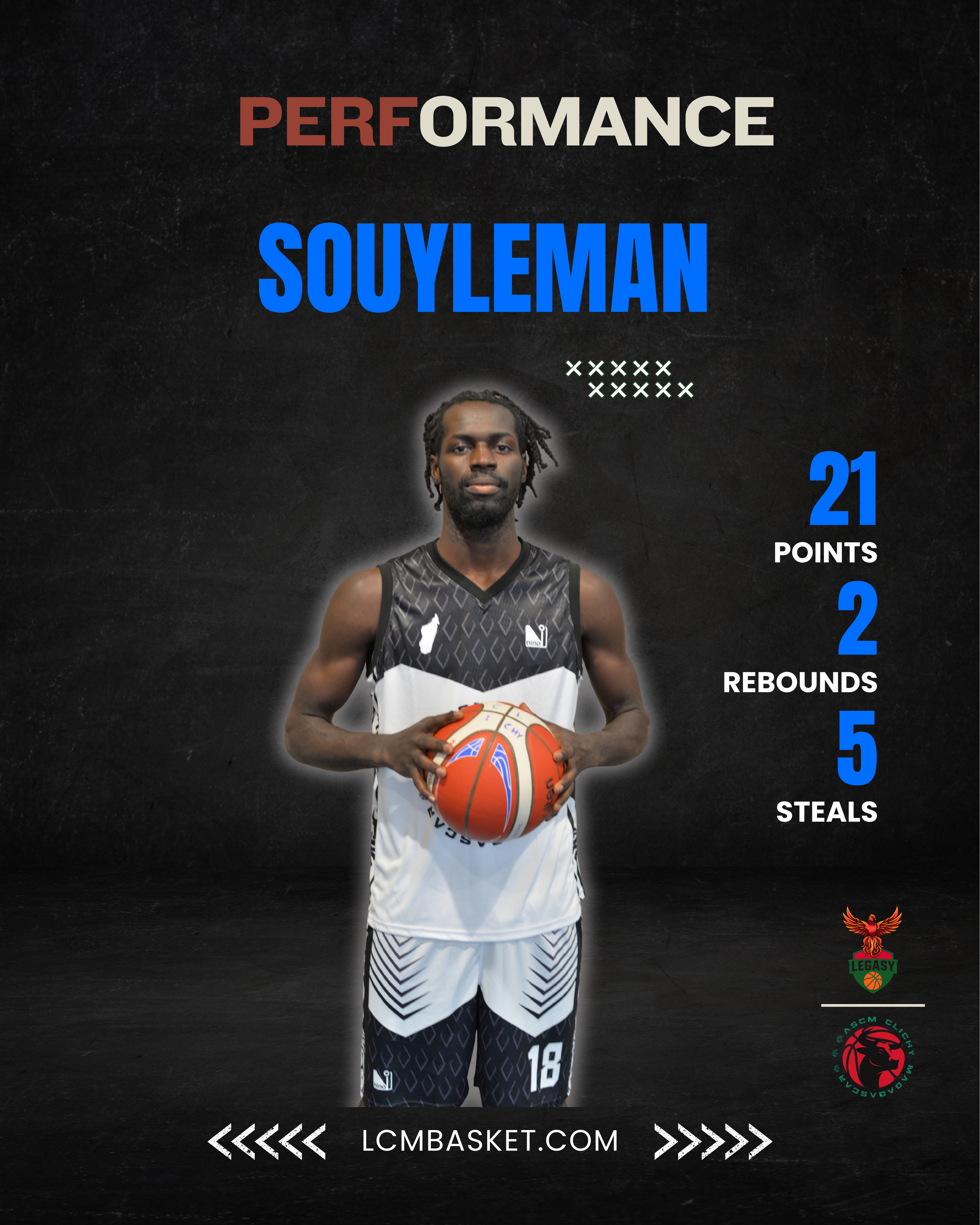 • Souyleman : 21 pts, 5 stl, 6/7 LF — véritable leader offensif