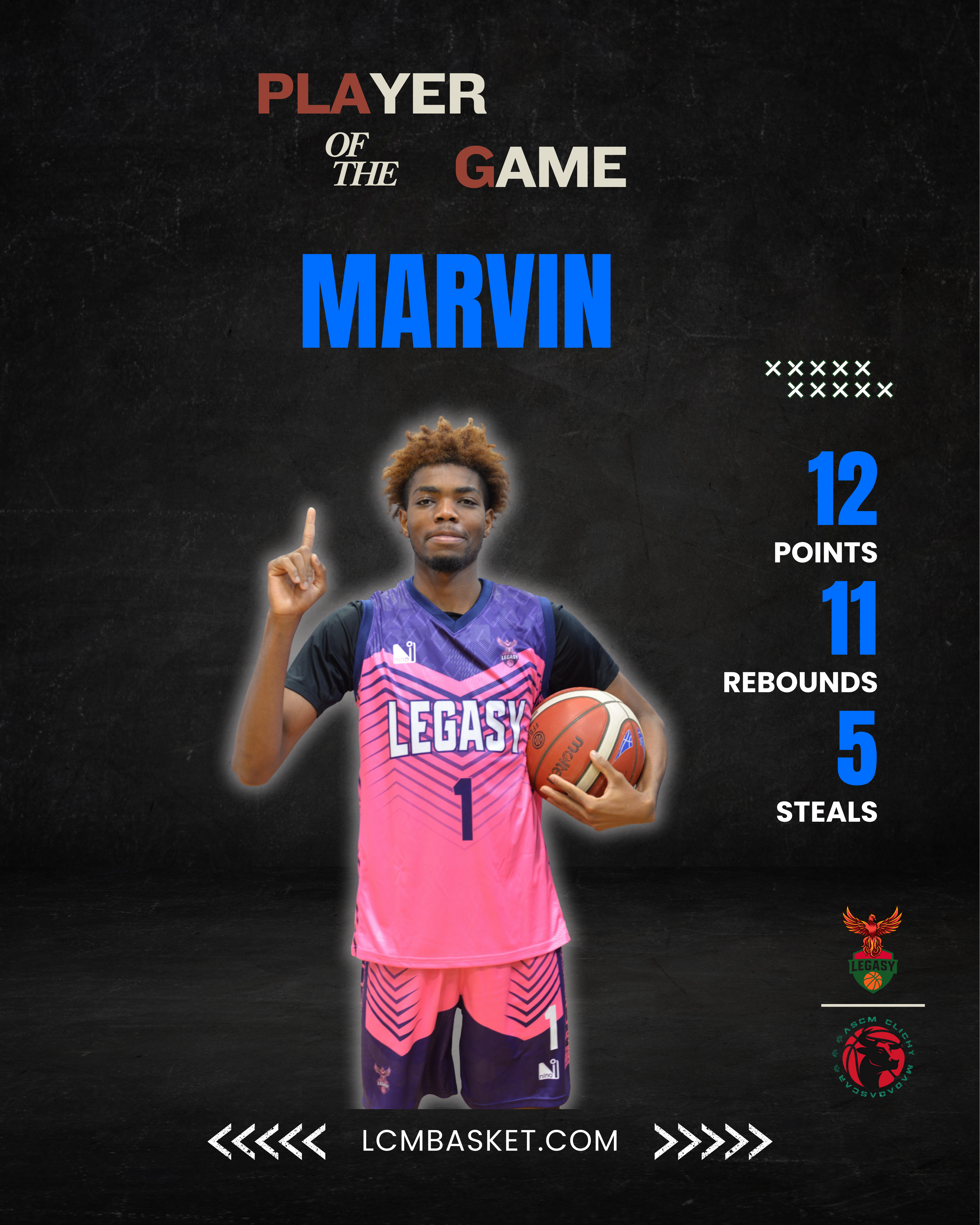 • Marvin : 12 pts, 11 reb, 5 stl, 4 blk — énorme activité malgré les 4 fautes